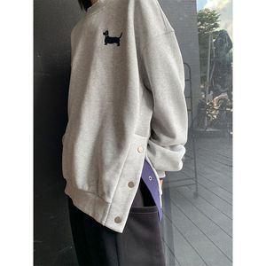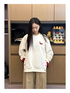 美式复古撞色小狗刺绣圆领卫衣女秋冬设计感小众潮牌宽松长袖上衣