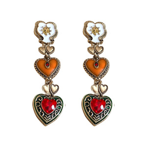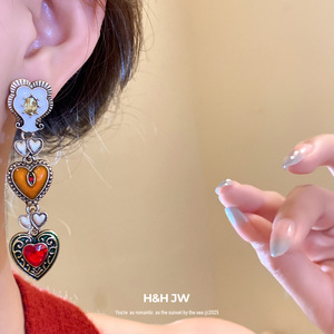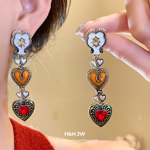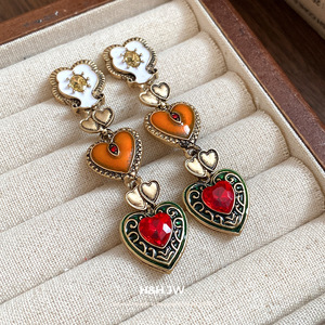 银针镶钻滴油爱心流苏耳环中古vintage气质耳钉轻奢高级感耳饰女