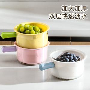 双层沥水篮 洗菜盆水瓢家用厨房塑料水果盆子水勺淘菜洗菜沥水篮