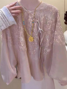 新中式藕粉天丝欧根纱刺绣斜门襟国风外套仿真丝斗篷披肩女上衣秋