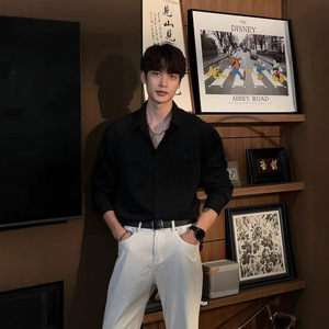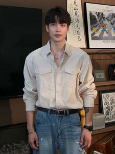 秋季新款工装衬衫口袋设计男士宽松高级休闲衬衣长袖翻领外套上衣