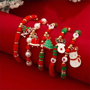 圣诞手链跨境热销圣诞6条装可爱麋鹿软陶手镯手链套装圣诞节礼物