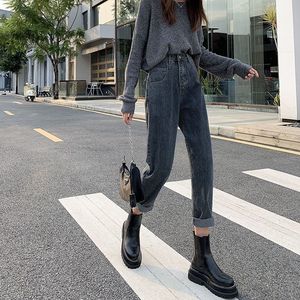 时尚弹力牛仔裤女2025年新款秋冬显高高腰宽松哈伦萝卜百搭裤子潮