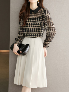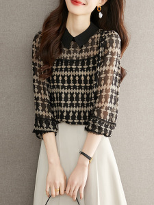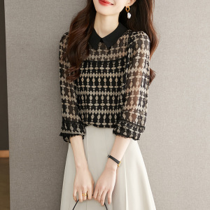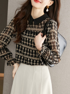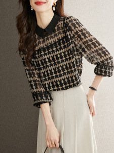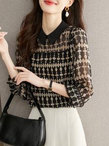 哥家商场同款女装2025秋季洋气时尚气质百搭通勤印花薄衬衣上衣