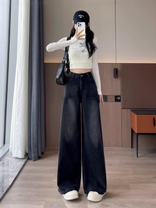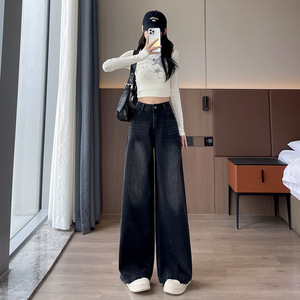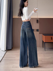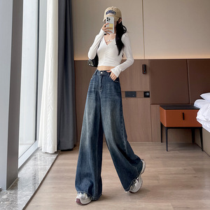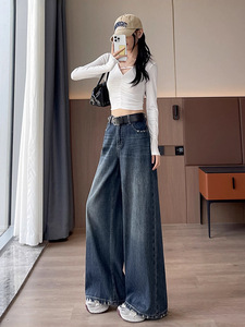 裤子牛仔裤女高腰显瘦垂感秋冬新蓝色窄版显腿长的女式牛仔裤7262