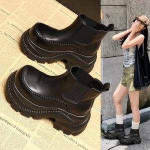 HS0589-33L厚底内增高切尔西短靴子女2025年秋季新款松糕矮筒短靴