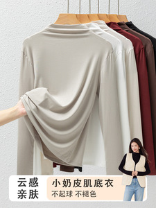 富欣娜黑色莫代尔半高领打底衫女春秋新款长袖高级感纯色内搭上衣