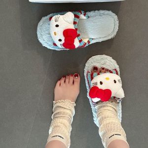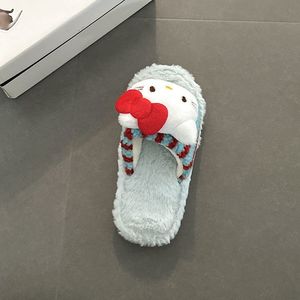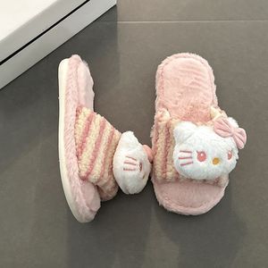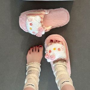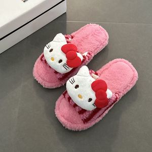 可爱甜美少女心KT猫露趾毛毛拖鞋女外穿2025秋冬新款毛绒一字拖鞋