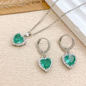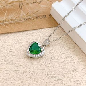 XL727祖母绿爱心项链银色