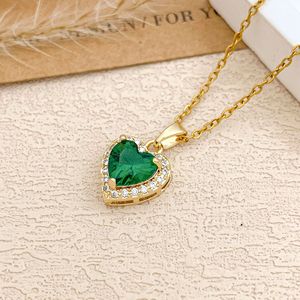 XL727祖母绿爱心项链金色