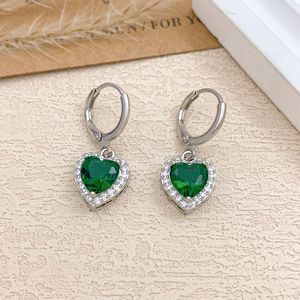 ED499祖母绿爱心耳扣银色