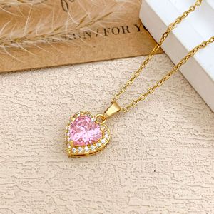 XL727粉色爱心项链金色