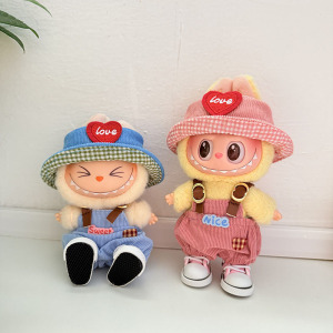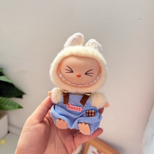 仅娃衣】一二三代挂件Labubu配饰拉布布娃衣坐坐派对格纹皮背带裤