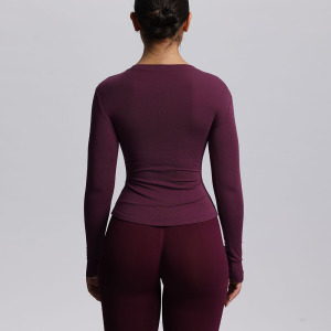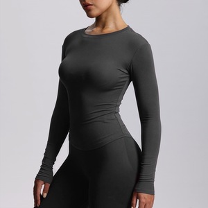 天丝莱卡圆领瑜伽长袖高弹训练健身上衣显瘦百搭运动t恤普拉提