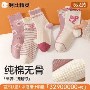 紫粉系萌兔-5双装【A类纯棉 无骨抗菌】
