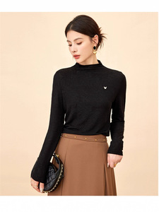2025秋冬季新款半高领针织打底衫修身显瘦提花毛衣套头内搭女上衣