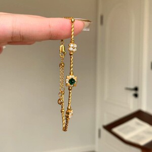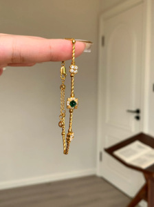 S925纯银四叶草绿糖塔手链女款轻奢时尚气质百搭高级感四叶花手饰