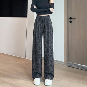 【8560】新款秋冬韩版设计感腰果花直筒阔腿显瘦高腰休闲拖地裤子
