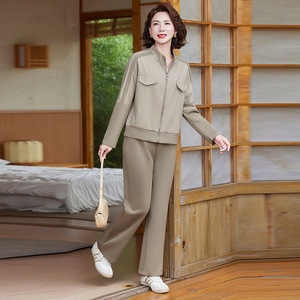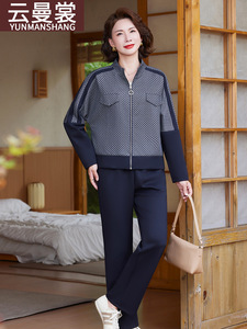 中老年运动服套装女新款妈妈秋装宽松上衣休闲大码拉链外套两件套