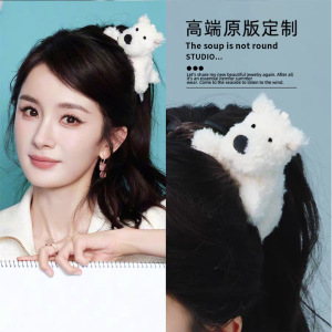 杨幂同款卡通西高地小狗发夹软萌可爱毛绒2025新款后脑勺夹子头饰
