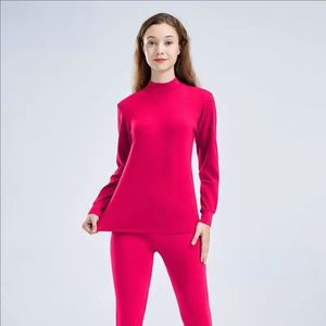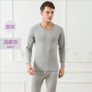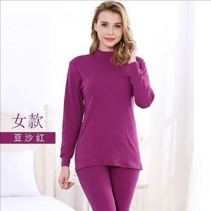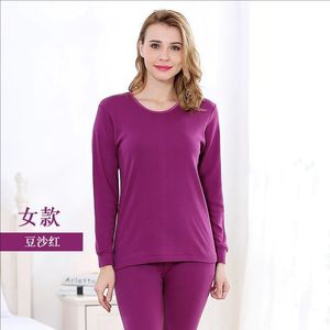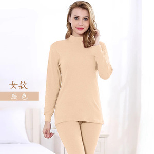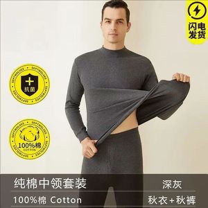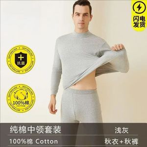 女士纯棉圆领秋衣秋裤薄款棉毛衫纯色中领保暖内衣套装男线衣线裤