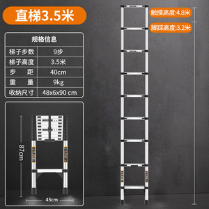 家用折叠新款伸缩梯不锈钢直梯专用户外安全加厚加高便携梯子