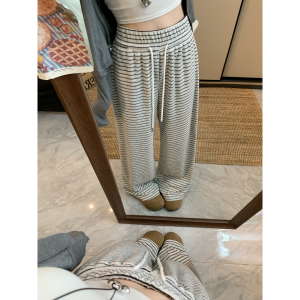 日系条纹抽绳阔腿裤女秋季新款小个子松紧高腰宽松直筒长裤休闲裤