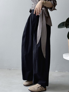 言双 韩版简约腰带气球裤女 秋季通勤百搭时尚休闲弯刀长裤82623