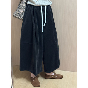 大阔腿设计感八分裤灯芯绒裤子女2025秋季新款韩版气质裤裙