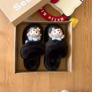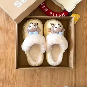 可爱卡通达菲熊拖鞋女外穿2025秋冬新款厚底加绒舒适保暖包头拖鞋