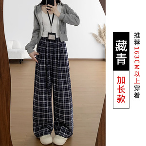 复古咖色格子阔腿裤女秋冬2025新款高腰垂感慵懒松弛感拖地休闲裤