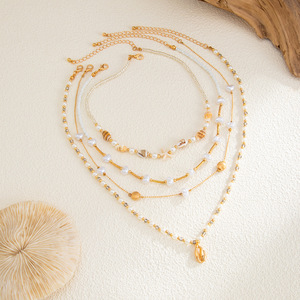 欧美跨境饰品时尚沙滩海螺海星吊坠锁骨链 ins个性仿珍珠米珠项链