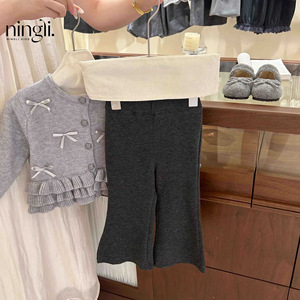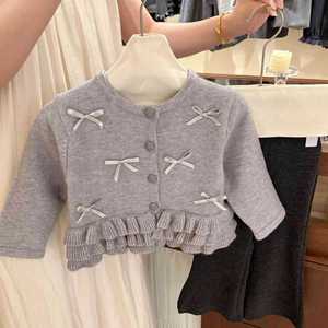 柠里女童网红套装春秋季新款洋气长袖针织开衫上衣儿童两件套跨境