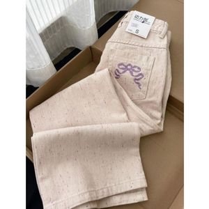 设计感彩墨宽松直筒牛仔裤女秋季新款浅色高腰显瘦垂感窄版阔腿裤