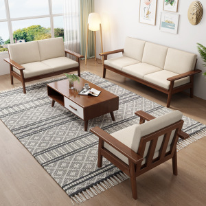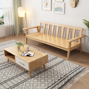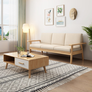 北欧实木沙发简约现代客厅组合贵妃布艺冬夏两用小户型原木色家具