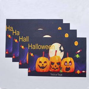 亚马逊跨境厂家直销长方形万圣节亚麻印花西餐厅厨房隔热垫批发