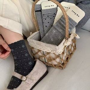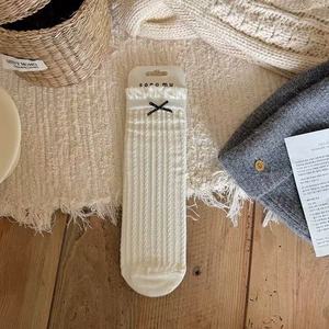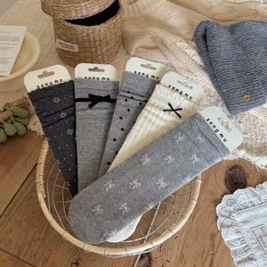 songmu 高智灰系列"灰色无骨袜子女中筒袜秋冬新品蝴蝶结堆堆棉袜