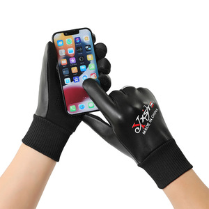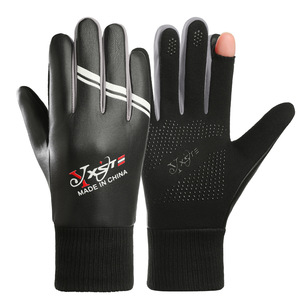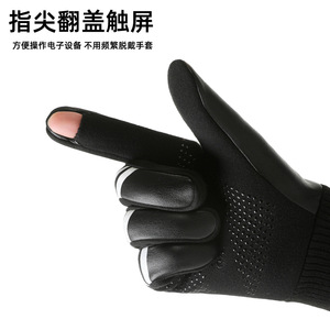 秋冬加绒手套PU加厚防滑触屏骑车开车运动男女情侣皮革保暖手套