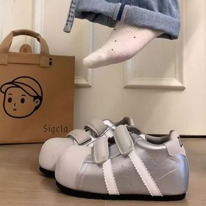 魔术贴丑萌贝壳头德训面包鞋女2025新款百搭内增高休闲运动小板鞋