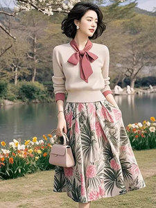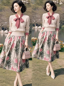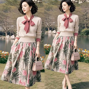 小个子气质显瘦高级感系带针织碎花开衫半身裙2025新款套装女