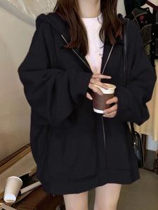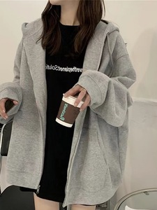 韩版高级感卫衣女入秋外套宽松中长款学院风秋加绒拉链开衫
