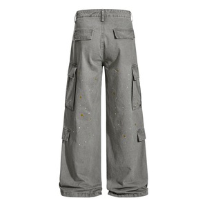 油漆泼墨多口袋工装阔腿长裤潮牌朋克男士宽松直筒裤设计感做旧脏