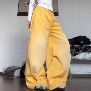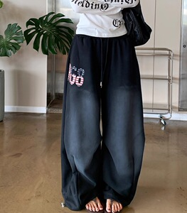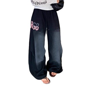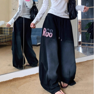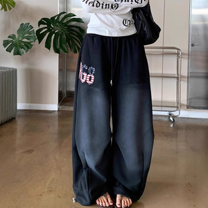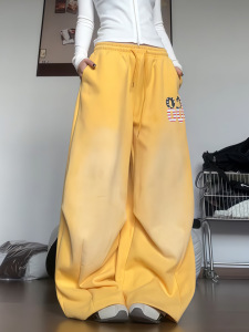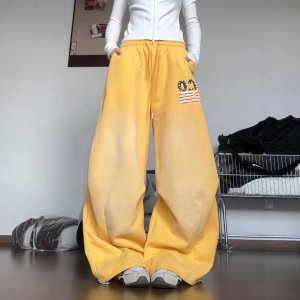 美式复古辣妹印花休闲卫裤女宽松百搭抽绳街舞阔腿伞兵嘻哈弯刀裤