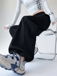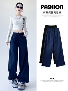 美式运动裤女秋季2025新款高腰垂感宽松直筒卫裤休闲阔腿裤