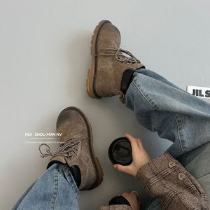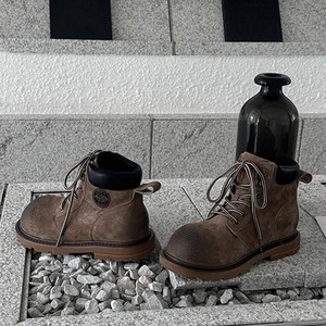 牛皮版~小众Q萌大黄女靴真皮做旧马丁靴女英伦风厚底短筒沙漠靴子