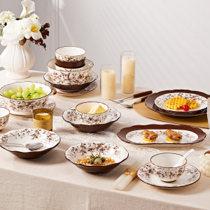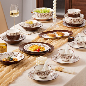 法式复古家用陶瓷碗碟盘复古陶瓷餐具碗碟套装乔迁送新人伴手礼