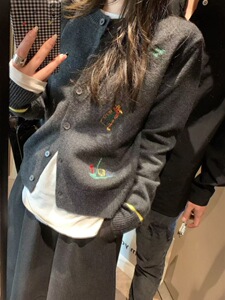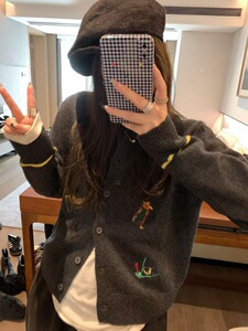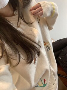 刺绣针织开衫女2025新款洋气秋冬氛围感可爱圆领休闲慵懒毛衣上衣