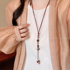 新中式项链绳子手工编织男女款菩提子吊坠挂脖复古民族风长款配饰