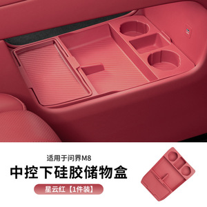 M8中控排挡+水杯架+小储物盒+冰箱垫+下中控储物盒【星云红】