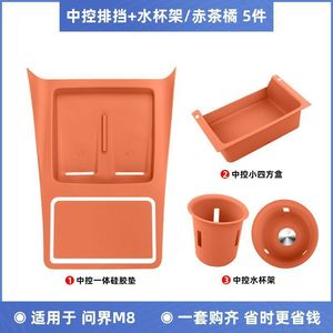 M8中控排挡+水杯架+小储物盒+冰箱垫+下中控储物盒【赤茶橘】